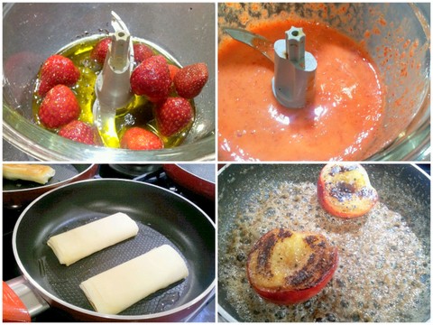 Blendıra çilekelr konur, Üzerine tuz, karabiber, limon suyu, elma sirkesi ve zeytinyağı konularak püre haline getirilir. Bu aşamada dressingin tadına bakılmalıdır. eğer ekşisi az ise biraz daha limon yada elma sirkesi ilave edilebilir.