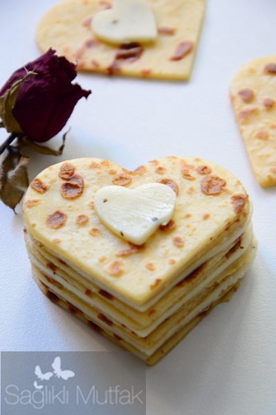 Merhaba. Her sene söylerim, sevgililer gününe inanan biri değilim. Bazı özel günler mesela doğum günleri harici genelde bu tarz günleri kutlamak için özel bir çabamız olmaz. Ama yine de minik dokunuşlu tatlı jestler sevgiye heyecan katmak için güzel oluyor. Mesela sevgilinize sabah kahvaltısı için bu minik kalp kreplerden hazırlayabilirsiniz. Bir de Hecha sahan da pişirip sunarsanız, lezzetine lezzet katmış olursunuz. Arasına da peynirden kalpler kesmeyi unutmayın. Sevgiler