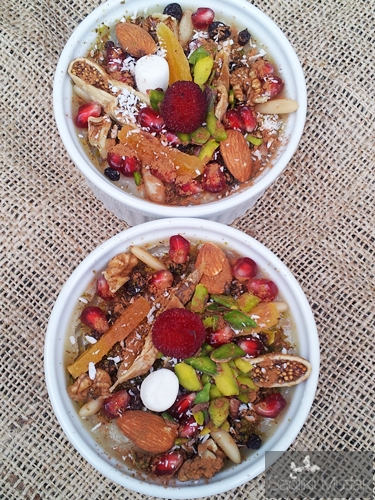 Her sene olduğu gibi bu senede Aşure tarifimiz var. Hep aynı biçimde ve aynı ölçüde yaptığım için sadece süslemesi değişiyor:). Tam aşure lezzeti ve kıvamında oluyor. Zaten en sevdiğim tatlıların başında gelir. Bu ölçülerle normal boy kaseler ile 20 kase...